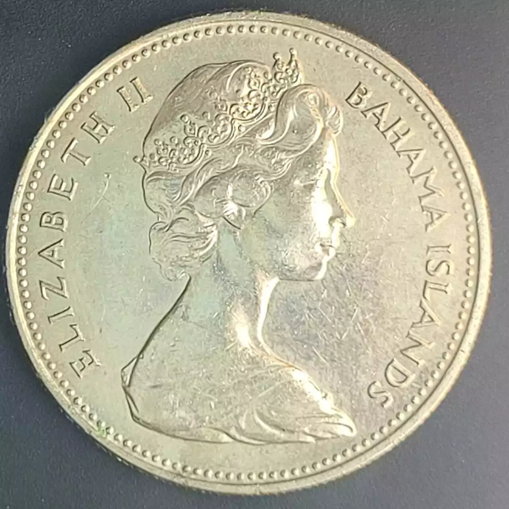 Anverso: Busto da Rainha Elizabeth II voltado para a direita, com a legenda “ELIZABETH II BAHAMA ISLAND”.