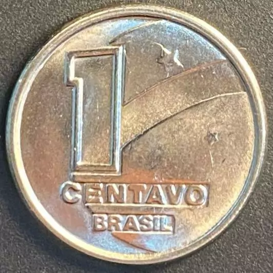 Valor facial com algarismo grande, nome do país por baixo; no fundo, um grande círculo que lembra o centro da bandeira brasileira, à direita, uma estrela de cinco pontas, indicando o valor facial em código Braille,