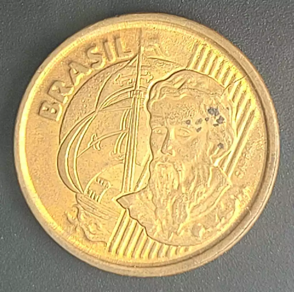 Reverso: Denominação acima da data em frente às linhas diagonais e o cruzeiro do sul.