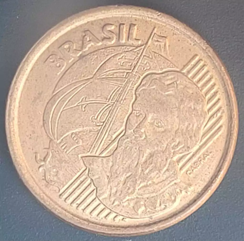 Retrato de Pedro Álvares Cabral, navegador português que "descobriu" o Brasil em 22 de abril de 1500, ladeado por navios simbolizando as navegações portuguesas;