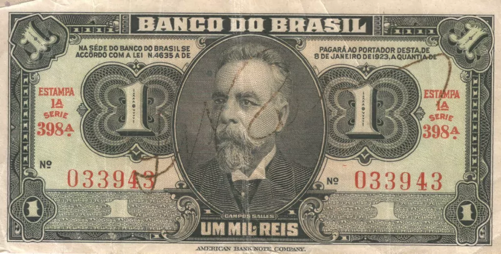 *Após as emissões com dupla sobreimpressão, nos valores de 20, 50, 100 e 200 Cruzeiros (carimbo de roseta), com a escassez de numerário no meio circulante, no valor de 1 Cruzeiro, e sem que o governo o pudesse fornecer, recorreu-se ao inventário do Banco de notas de 1 Mil Réis e à sua emissão. Essas cédulas, com valor equivalente a 1 Cruzeiro, entraram em circulação sem qualquer superimpressão, como a realizada na série anterior. A distinção da emissão do Banco do Brasil deve ser feita pelo número de série, que vai do 279º ao 500º, e pela assinatura única, no sentido diagonal.