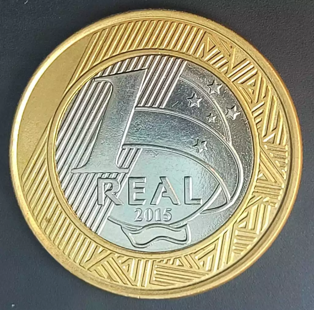 Reverso: Número 1 sobre pormenor estilizado do brasão de armas brasileiro
