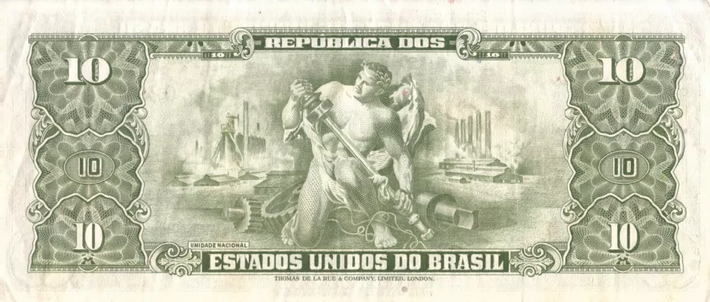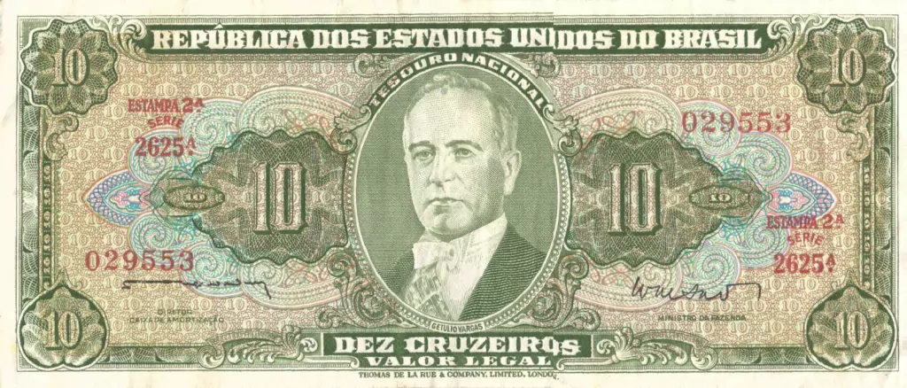 Ao centro, envolto em moldura decorada, o retrato de Getúlio Dornelles Vargas (Presidente da República 1930 - 1945 / 1951 - 1954), ladeado pelos numerais 10.