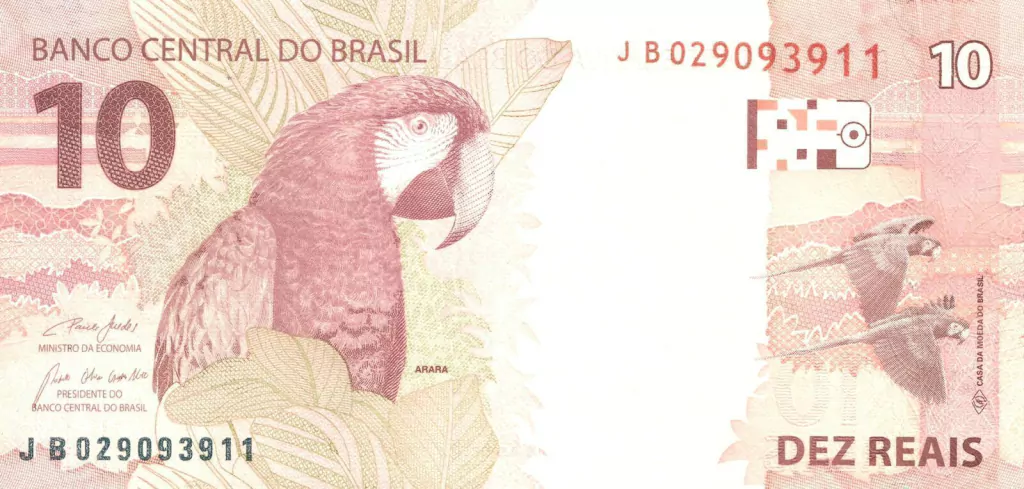 A arara (Arara chloroptera) entre folhagens, com uma imagem de duas araras em voo.