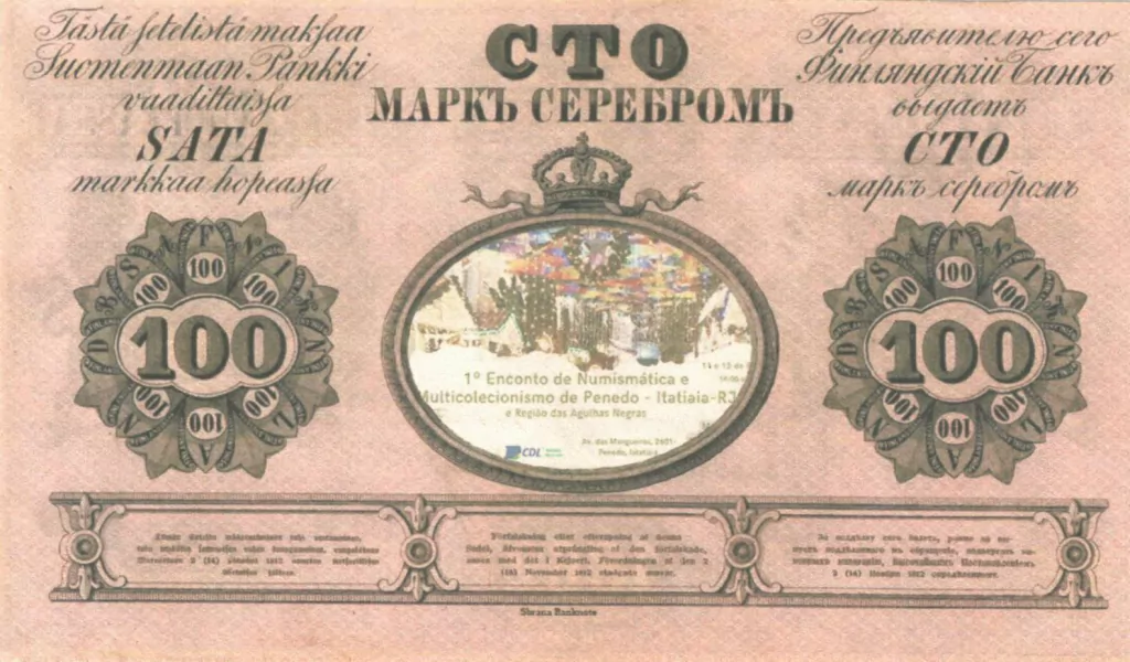 Trata-se de uma cédula comemorativa criada pela Rocha Numismática em homenagem ao 1° Encontro de Numismática e Multicolecionismo em Penedo - Itatiaia. Cabe dizer que não se trata de uma cédula autêntica que tenha circulado no Brasil, sendo este apenas um produto comemorativo ao evento realizado.