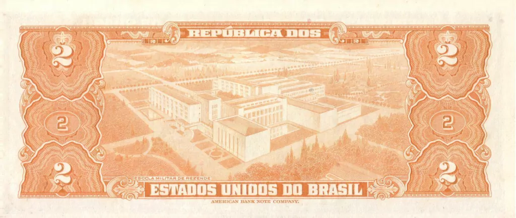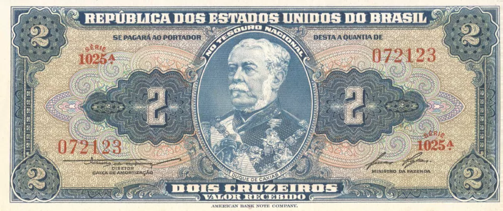 Ao centro, envolto em moldura decorada, o retrato de Luiz Alves de Lima e Silva (Duque de Caxias), ladeado por algarismos 2.