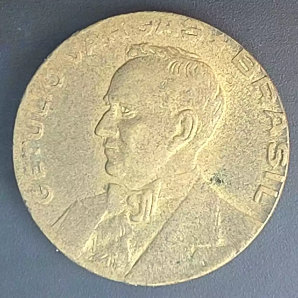 Anverso: Retrato de Getúlio Dornelles Vargas (1882-1954), voltado para a esquerda, Presidente do Brasil de 1930 a 1945 e de 1951 a 1954.