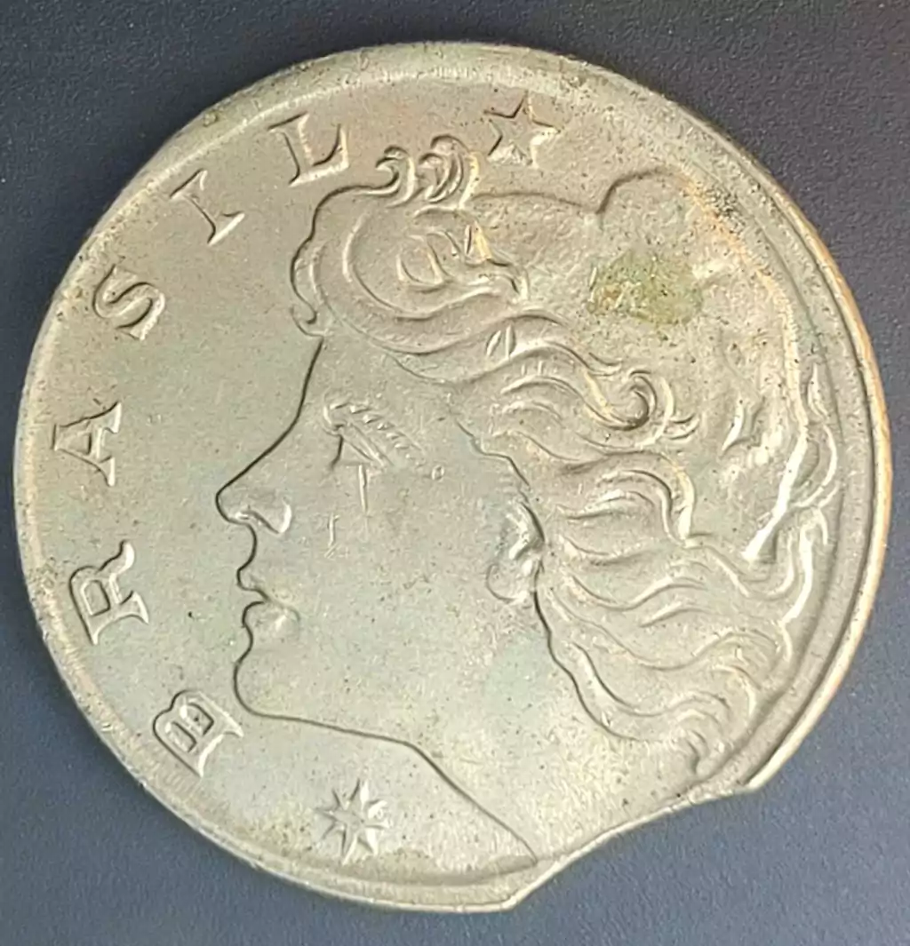 Anverso: Efígie com barrete frígio representando a República / "BRASIL". Rosa dos ventos em baixo e estrela em cima