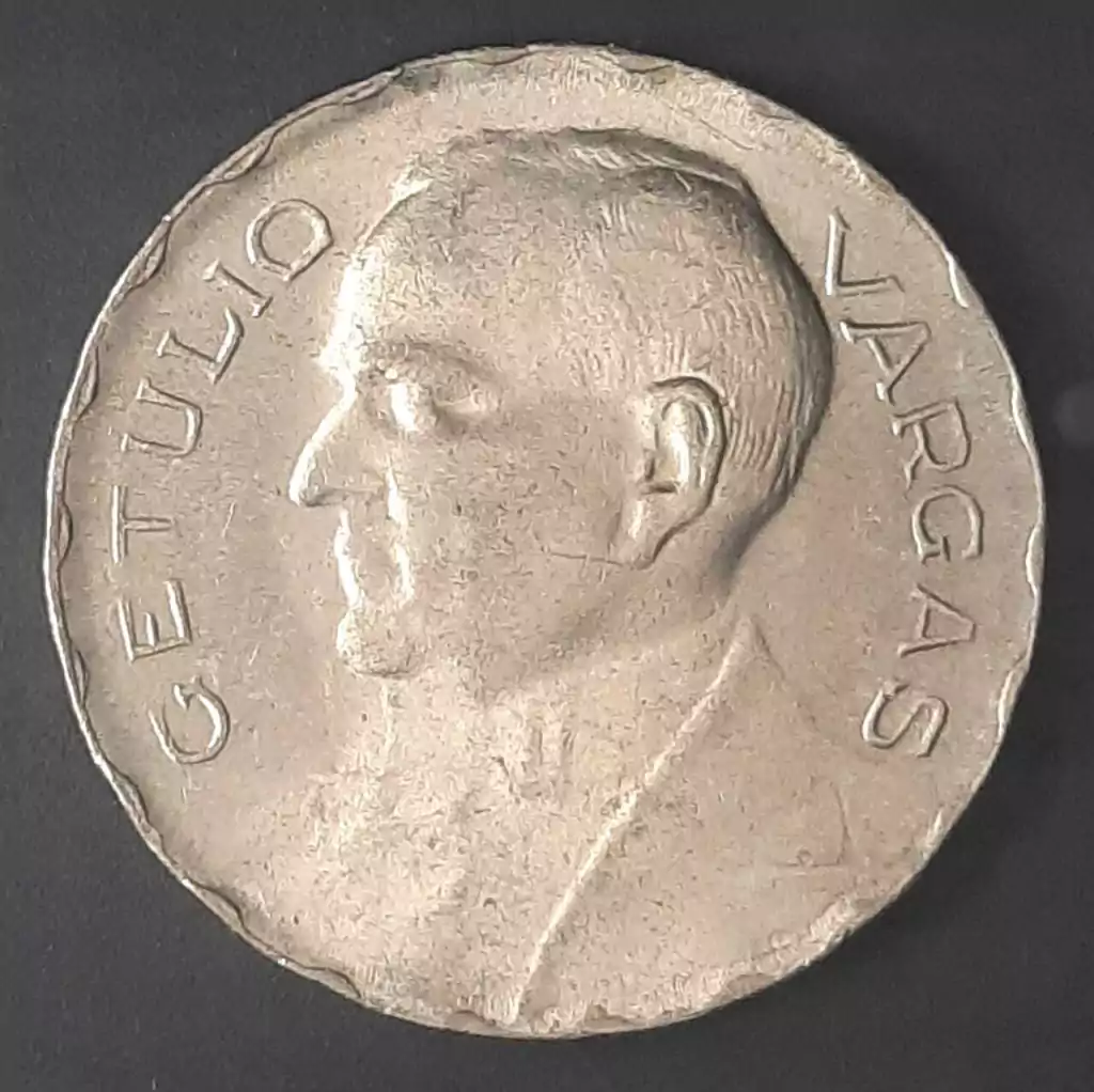 Reverso: Denominação acima da data, rodeada por um colar com decoração marajoara.