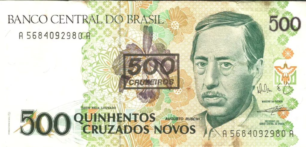 No centro selo retangular de 500 Cruzeiros (overprinted).