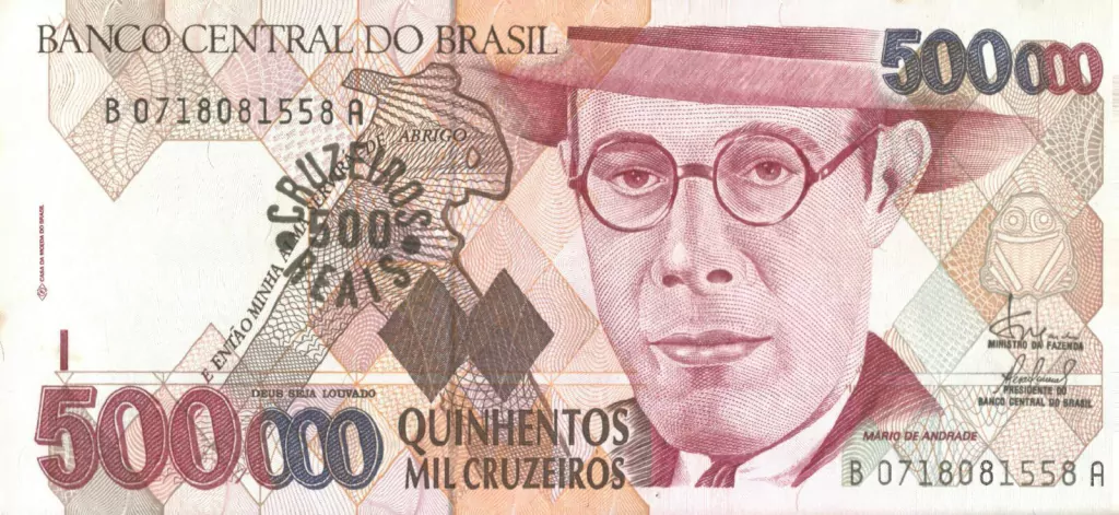 Carimbo circular de "500 Cruzeiros Reais" em P#236 (overprinted)