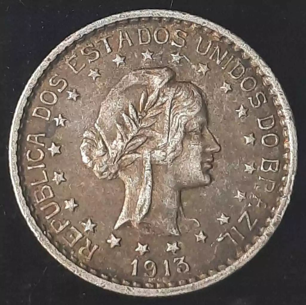 Reverso: Brasão da República dos Estados Unidos do Brasil / Lema positivista "Ordem e Progresso" na parte superior e valor facial em ramos abaixo.