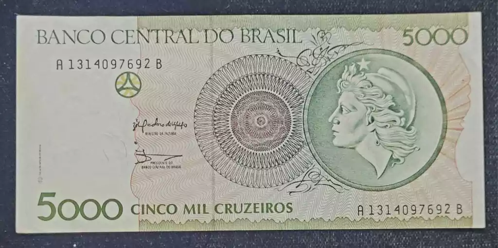 Efígie da República, com rosácea guilhochada à esquerda (desenhos contínuos e simétricos em que a ponta do trabalho regressa ao ponto de partida).
