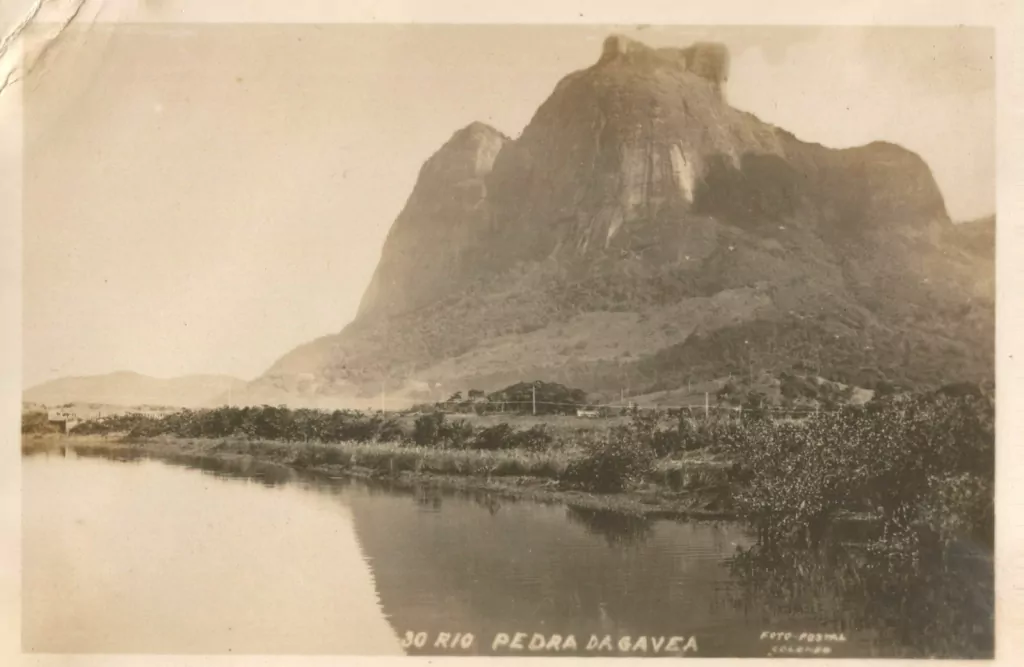 Esta foto postal antiga da década de 30, da prestigiada Foto Postal Colombo, mostra a imponente Pedra da Gávea, marcando a beleza da paisagem carioca de um tempo passado. Com seu charme nostálgico, a imagem oferece um vislumbre da natureza selvagem e inalterada do Rio de Janeiro. Uma verdadeira raridade para colecionadores que desejam capturar a essência do Rio de outrora em sua forma mais autêntica.