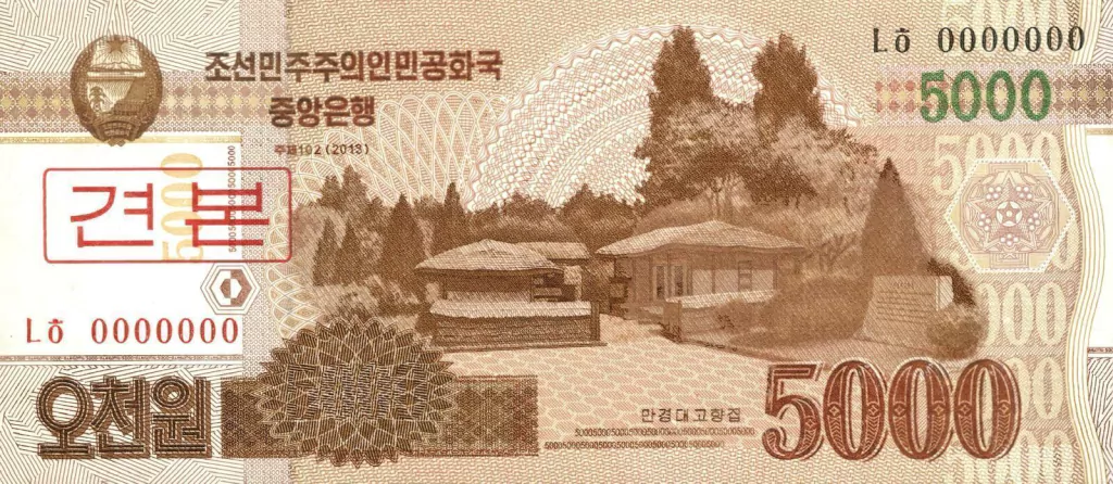 Local de nascimento de Kim Il-sung, em Mangyongdae-guyok, e emblema do Estado
