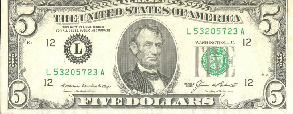 Anverso: Retrato de Abraham Lincoln ao centro.