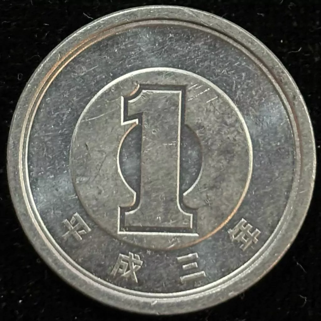 Reverso: Grande numeral “1” centralizado dentro de dois círculos internos, com a data em caracteres japoneses abaixo.