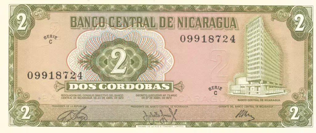 À direita, o edifício do Banco Central da Nicarágua.