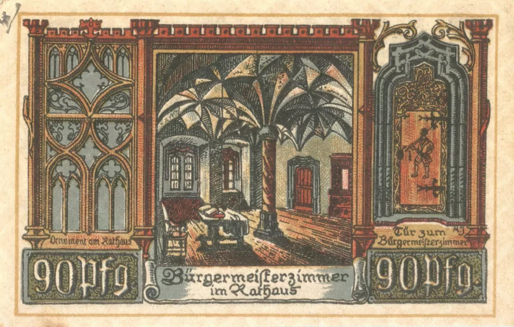 A cédula exibe a inscrição: “Notgeld da cidade de Jüterbog”.
