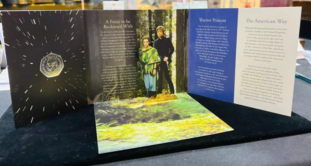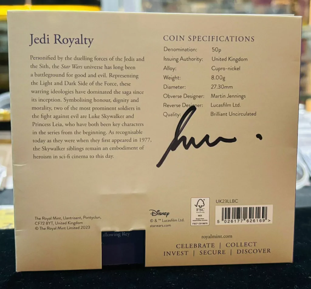 Emissão comemorativa do 40º aniversário da Guerra das Estrelas: O Retorno de Jedi™ - Assinada por gravador. A moeda inclui um elemento lenticular especial que representa a insígnia da Ordem Jedi.
