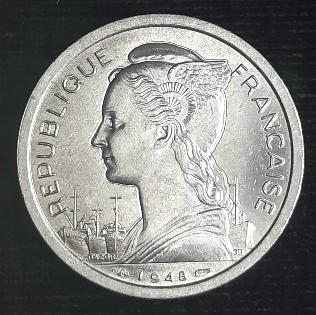 ANVERSO: Cabeça de Marianne à esquerda, com um barrete frígio alado. 4 navios ao fundo. Data abaixo.